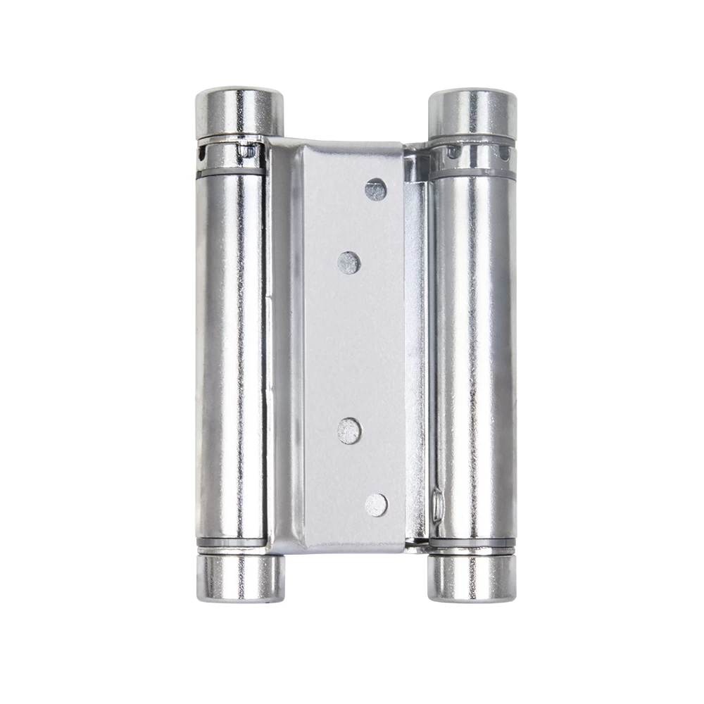 Петля двусторонняя (она же барная, пружинная, петля метро) применяется для деревянных дверей. Позволяет двери открываться в обе стороны, возвращает дверь в центральное положение (в створ). Втулки петель выполнены из техно-полимера, обеспечивают амортизацию, гарантируют тихую и плавную работу, увеличивают срок службы более 200 000 циклов. Специальный тормоз замедляет движение двери и уменьшает количество колебаний, это дает возможность использовать двери большего веса и размера. В комплекте с петлями идут полимерные пластины, облегчающие установку и гарантирующие надежное крепление.