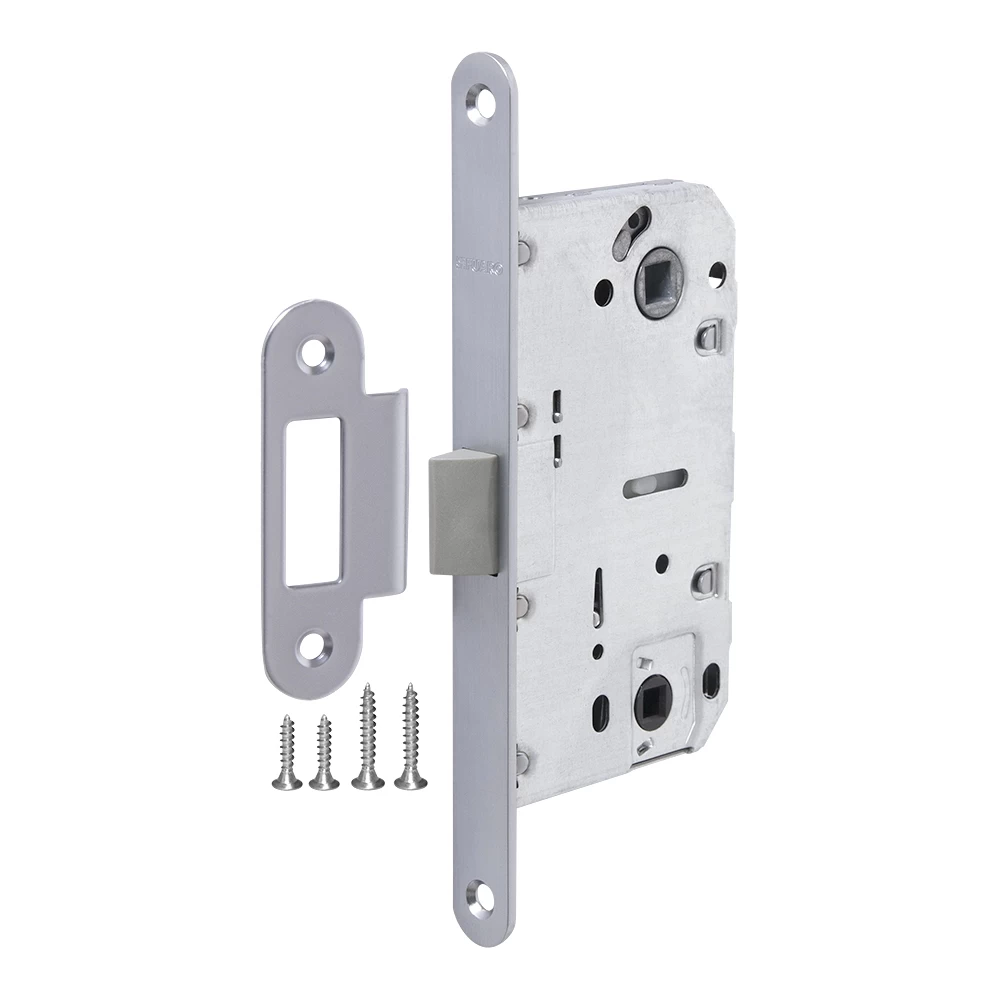 Дверная защелка с пластиковым механизмом Fuaro P96WC серии PLASTIC изготовлена в соответствии с требованиями ГОСТ 5089-2011. Предназначена для установки в деревянные межкомнатные и сантехнические двери. Легкая смена направления язычка защелки, подходит для дверей левого и правого открывания. Корпус выполнен из стали с надежным гальваническим покрытием. Ударопрочный пластиковый механизм обеспечивает бесшумность работы защелки. Защелка P96WC с усиленным блоком пружин имеет высший 4 класс надежности (250 000 циклов открывания/закрывания). Отверстия под стяжные винты находятся на расстоянии 38 мм. Размер бэксета - 50 мм. Размер межосевого расстояния - 96 мм. Возможна установка дверных ручек на стяжные винты для более прочного крепления. Цвет: сатинированный хром. В комплектацию входят: ответная планка и крепежная фурнитура в цвет изделия.