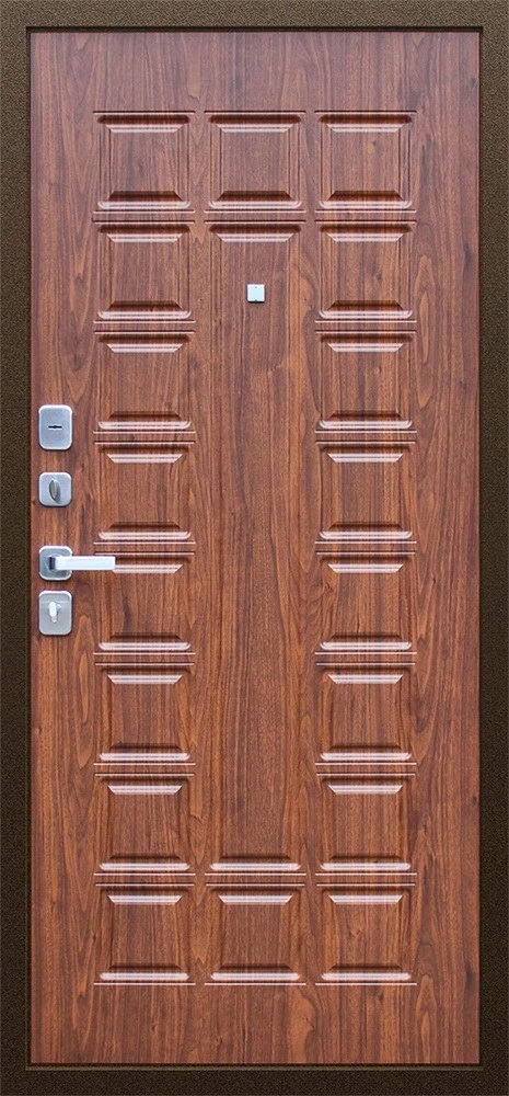 Надежная входная Дверь Спартак Орех темный премиум класса по цене 33 707 руб. Большая толщина стали защитит от проникновения в ваш дом, квартиру или коттедж. Используется очень качественная фурнитура: замки, цилиндры, ручки, защелки. Покрытие и отделка двери изготовлено под внимательным контролем производителя. Дверь имеет долгий срок службы и гарантию.