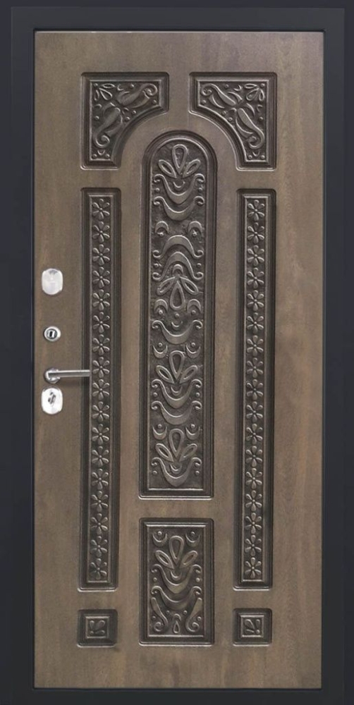 Дизайнерская входная Входная дверь ДвериПРО L-45 Д-19 (16мм, Грецкий орех + черная патина винорит) DPRO194044 класса Люкс с несколькими листами стали, звукоизоляцией и теплоизоляцией. Утепленный короб и полотно защитят от сквозняков и шумов. Модель не только надежная, комфортная, защищенная и высочайшего качества, но и очень красивая! Будет отлично сочетаться с интерьером дома, квартиры или офиса. Сейчас действует выгодное предложение по цене: 79 957 руб.